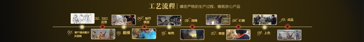 制作一件完美的鑄銅雕塑,最重要的步驟就是制作泥塑模型,然后再用工業(yè)硅膠拓印、翻模。所以泥塑的姿態(tài)、神情生動與否直接影響最終銅雕塑的品質(zhì)。所以我廠一直對泥塑模型的制作格外重視。我廠以雕塑為本,以藝術(shù)為根,挾中華文化之傳統(tǒng),偕歐陸藝術(shù)之風(fēng)韻,風(fēng)格獨特,盡顯淋漓盡致。我們本著大膽創(chuàng)新、勇于突破的精神,以追求卓越為導(dǎo)向,堅持寧缺勿濫為原則,并可依照您提供的要求,為您量身設(shè)計制作。我廠人才濟濟,有智慧嚴(yán)謹?shù)墓芾戆嘧樱姸嗄贻p充滿激情、充滿創(chuàng)意的專業(yè)設(shè)計團隊、有專業(yè)技術(shù)精湛的雕塑制作人才和專業(yè)的施工隊伍。他們不僅具深厚的文化藝術(shù)底蘊,更汲取當(dāng)代雕塑精華,博采眾家之長,作品既有嚴(yán)肅莊重寫實題材,也有輕松前衛(wèi)的抽象題材,表現(xiàn)手法上浪漫主義中不乏樸實,現(xiàn)實主義中蘊涵著激情,設(shè)計理念貫穿古今、融匯中西,深刻詮釋著藝術(shù)的精髓,把古典主義和后現(xiàn)代主義完美的融合,將雕塑藝術(shù)演繹為力的凝聚、美的體現(xiàn),讓人們感受到的不僅是一種藝術(shù)的浪漫與優(yōu)雅、粗獷與悲壯、更是豐富的優(yōu)秀藝術(shù)寶藏和文化傳統(tǒng),讓您在藝術(shù)與文化中穿流,在時空中飄蕩,使靈魂在藝術(shù)的海洋洗禮。 MORE+